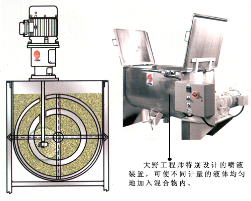 | 大野企業(yè)高效混合機有三種標準的攪拌設計可選用--連續(xù)式螺條、打斷式螺條和槳葉,它們分別用于中心或端部卸料。 |