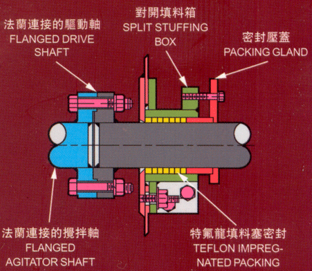 這種設計用來防止液體或固體流進填料箱,空氣或液體在輕微的壓力作用下,從一個填料箱的外殼環(huán)持續(xù)地進入混合機。 |